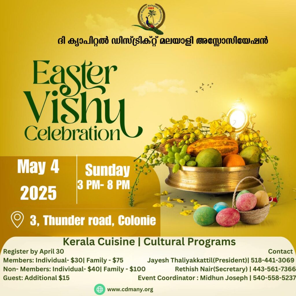 EASTER & VISHU 2025 SUNDAY, MAY 4, 2025 ~ 3:00 PM – 8:00 PM3 Thunder Road, Colonine, NY 12205 Registration FormRegister by April 30, 2025 RSVP LIST Search Entries: First NameLast NameRSVP Date First NameLast NameRSVP Date